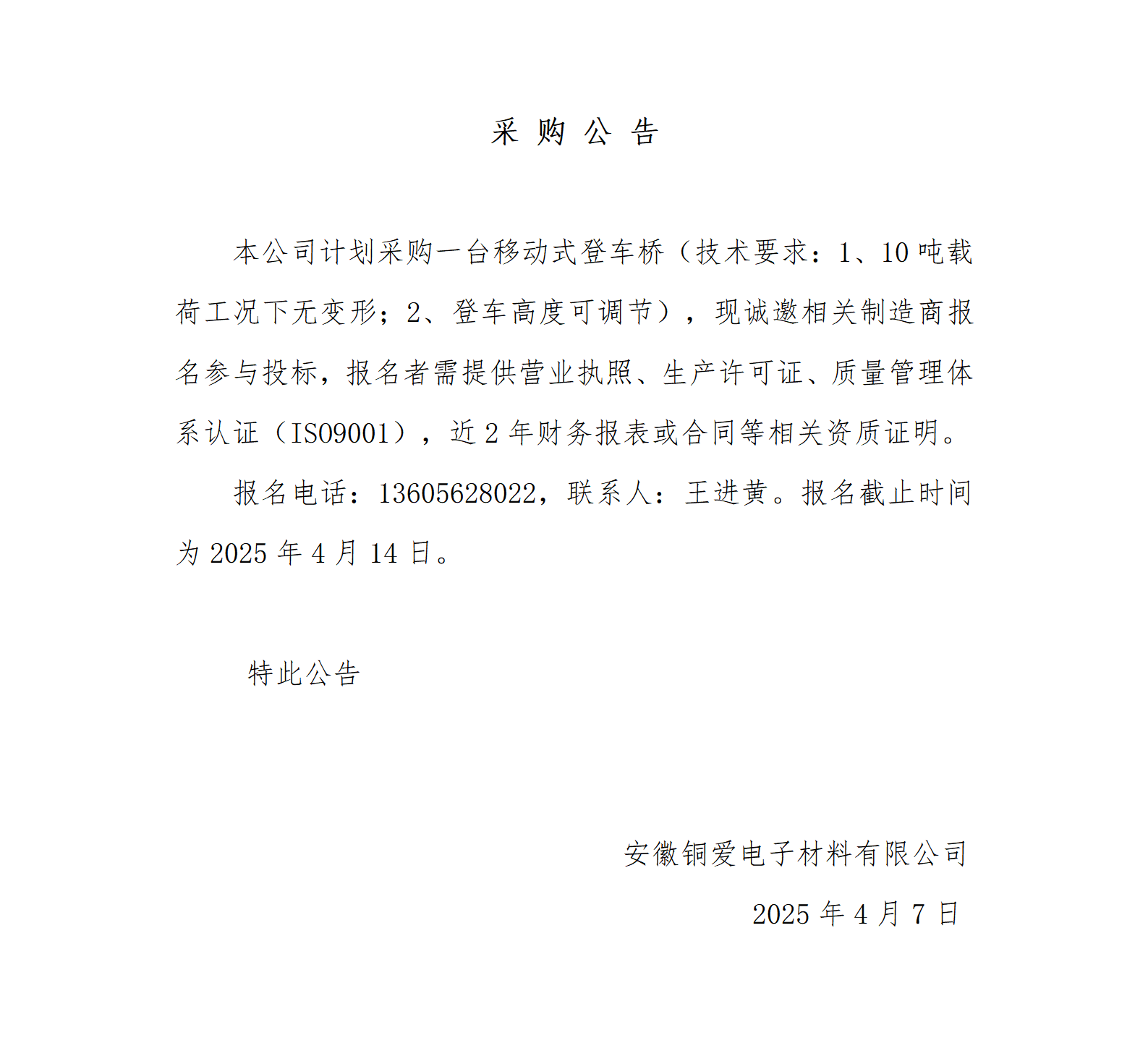 銅愛公司移動式登車橋采購采購公告_01