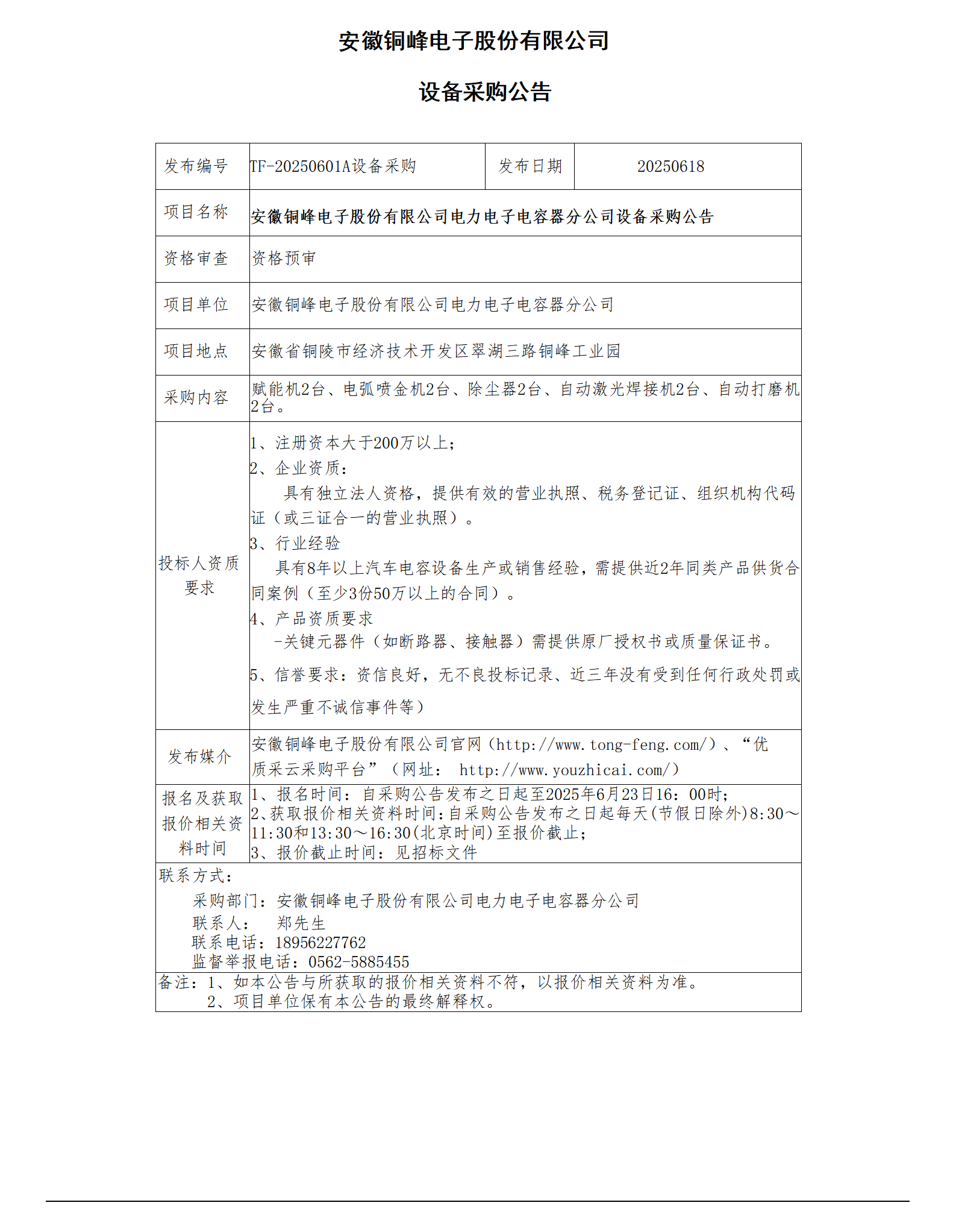 電力電子電容器分公司設備采購公告_01