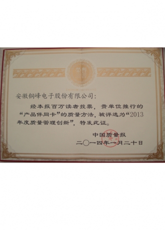 質(zhì)量創(chuàng)新獎(jiǎng)